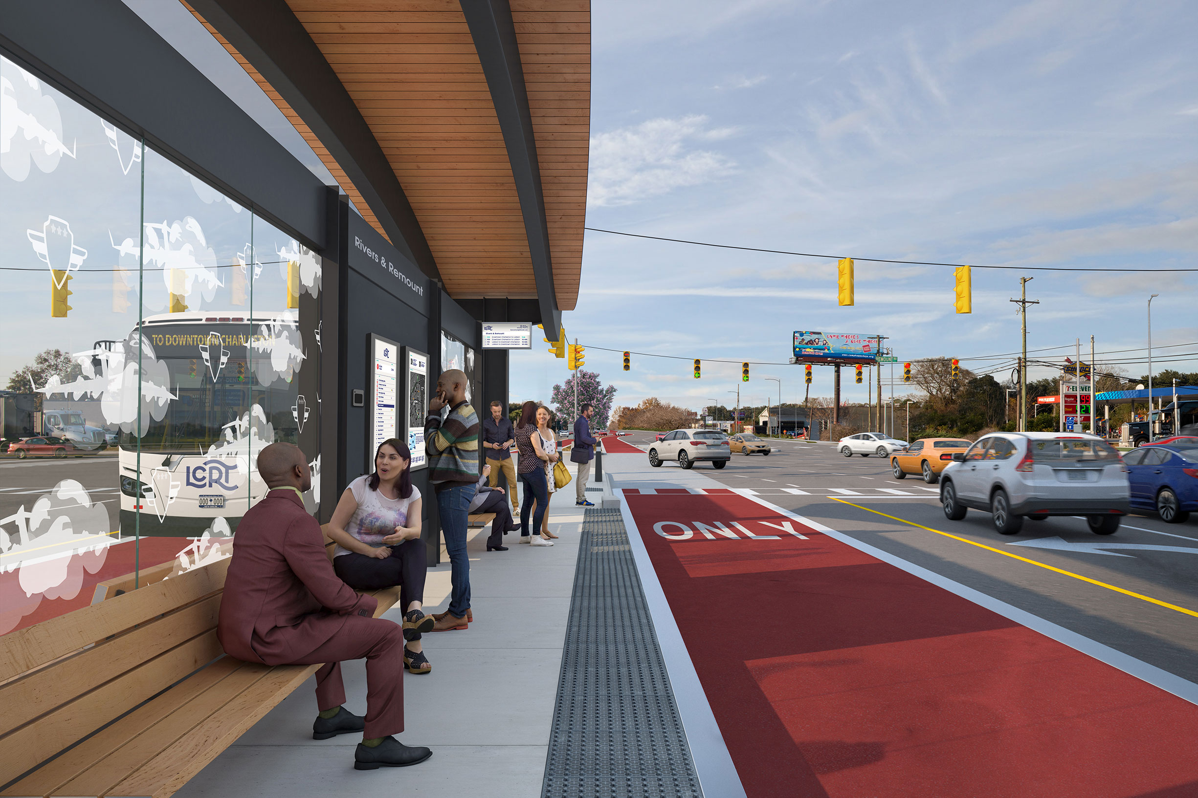 LCRT's route design will help keep vehicles on schedule. Transit-only lanes and first priority at stoplights will help provide fast, reliable service. Mobile ticketing and off-board fare payment will minimize the amount of time it takes to board BRT vehicles. This means less time spent at the stations, both for you and the vehicles.