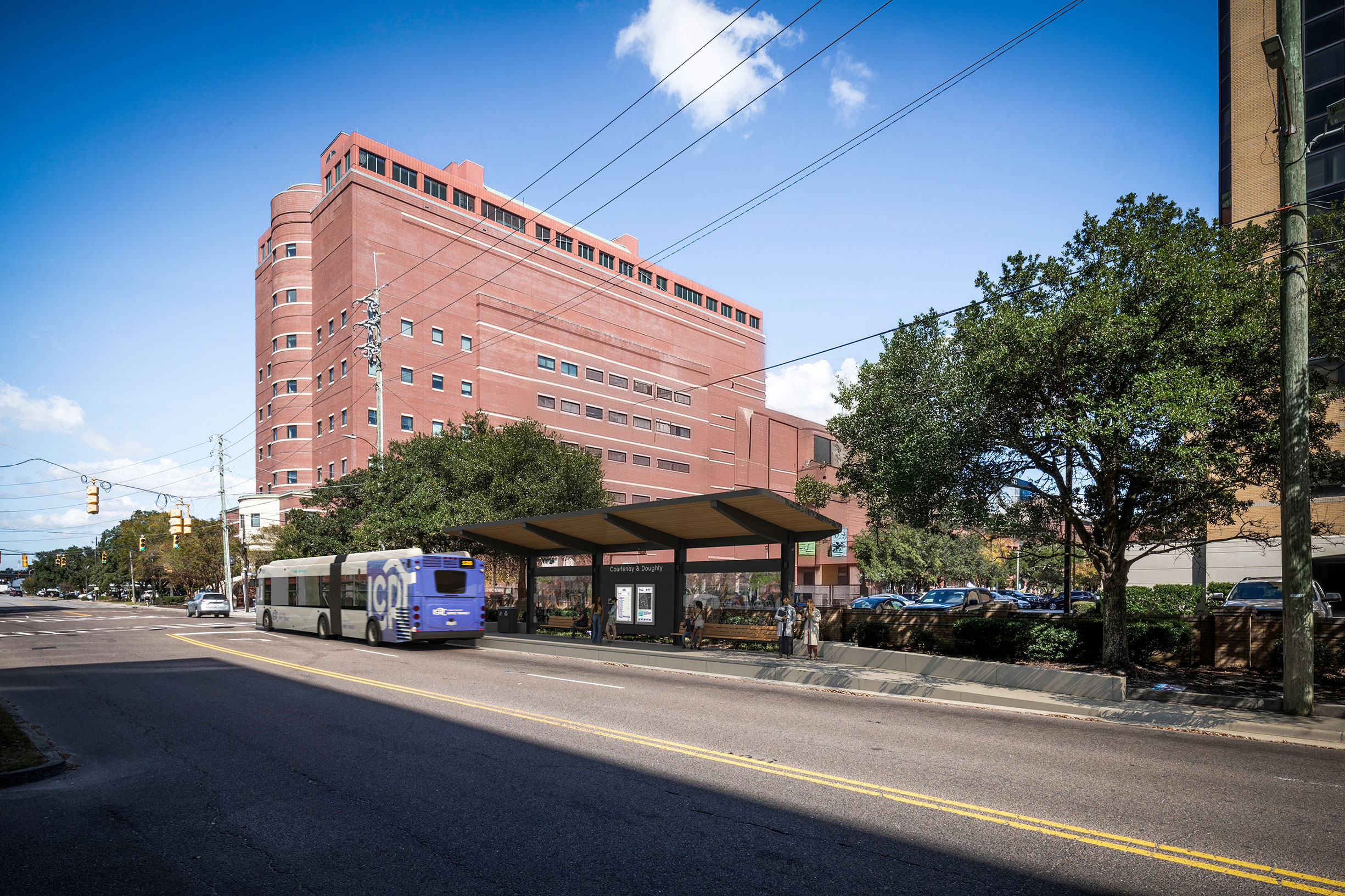 This is an example of North Charleston station architecture. Read the callouts to learn more about key station features.